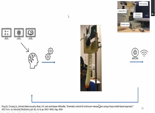 H. K. Lam教授首先介绍了开、闭环系统的基本概念以及传统控制算法的局限性,提出了模糊控制与机器学习方法相结合的意义和基本思路,然后结合自身的科研经历及取得的成果展开详细介绍。针对传统控制方法存在需要精确数学模型、鲁棒性较弱、容错能力低等问题,H. K. Lam教授团队经过长期研究,将模糊控制与机器学习结合起来运用于机器人控制、药物管理以及生物医学工程等各种实际情况。最后H. K. Lam教授对模糊控制与机器学习领域的科研热点及应用前景进行了总结。