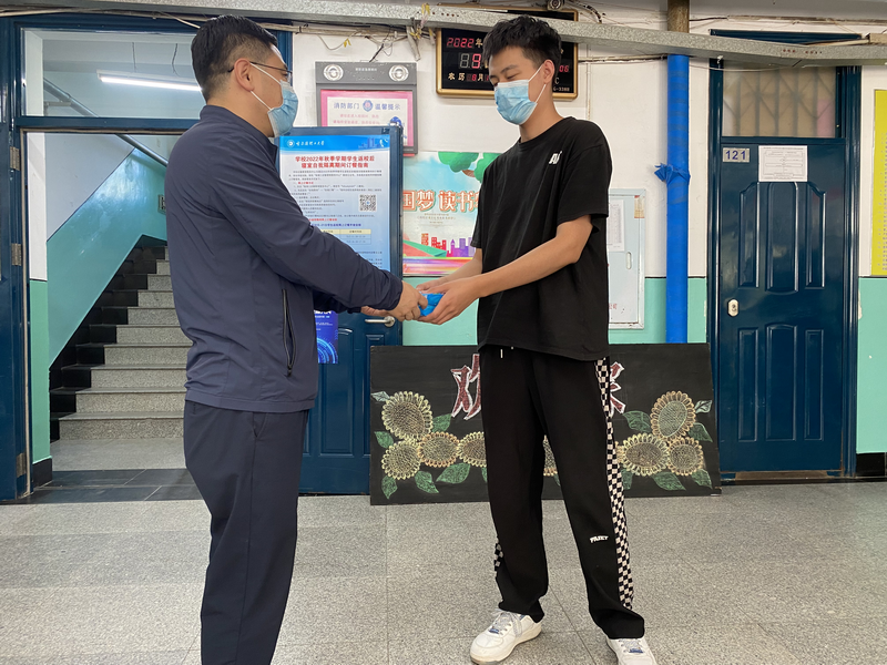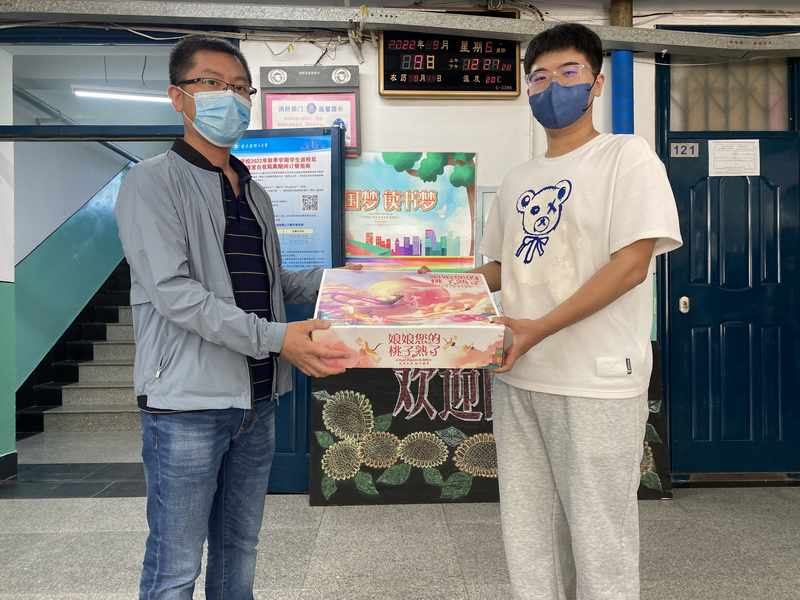 首先,学院党委书记贾红宇代表学院党委对同学们致以中秋的问候。贾书记表示在疫情影响下,为同学们的安全与健康着想,学校实行封闭管理,学院全体教师心系学生,在中秋佳节临近之际,同学们不能回家与亲人团聚,希望借此机会与大家共度温暖、难忘的中秋佳节。自动化学院院长胡军悉心向在校学生了解他们的学习和生活,特别关心同学们目前的线上学习情况,鼓励各位同学在线上学习中要更加严格要求自己,不要懈怠,学院全体教师也会不遗余力帮助同学们积极解决学业问题。同时,提示同学们严格遵守疫情防控管理规定,注意寝室通风消毒,出行严格佩戴口罩,错峰就餐,避免聚集。随后,学院领导和老师们向同学们赠送节日慰问品。同学们一致感谢学院的关怀和祝福,表示要自觉遵从学校疫情防控管理规定,认真完成线上学习,坚持健康生活方式。今年的中秋节也逢第38个教师节,学院学生也向老师们送上了鲜花与贺卡,感恩学院教师在传道授业解惑中的辛勤付出,祝福各位老师工作顺利,身体健康。最后,教师代表来学生寝室中,与同学们畅聊,一起分享寝室学习生活故事,相互添加联系方式,加强交流,及时帮助同学们解决学习和生活中的困难。